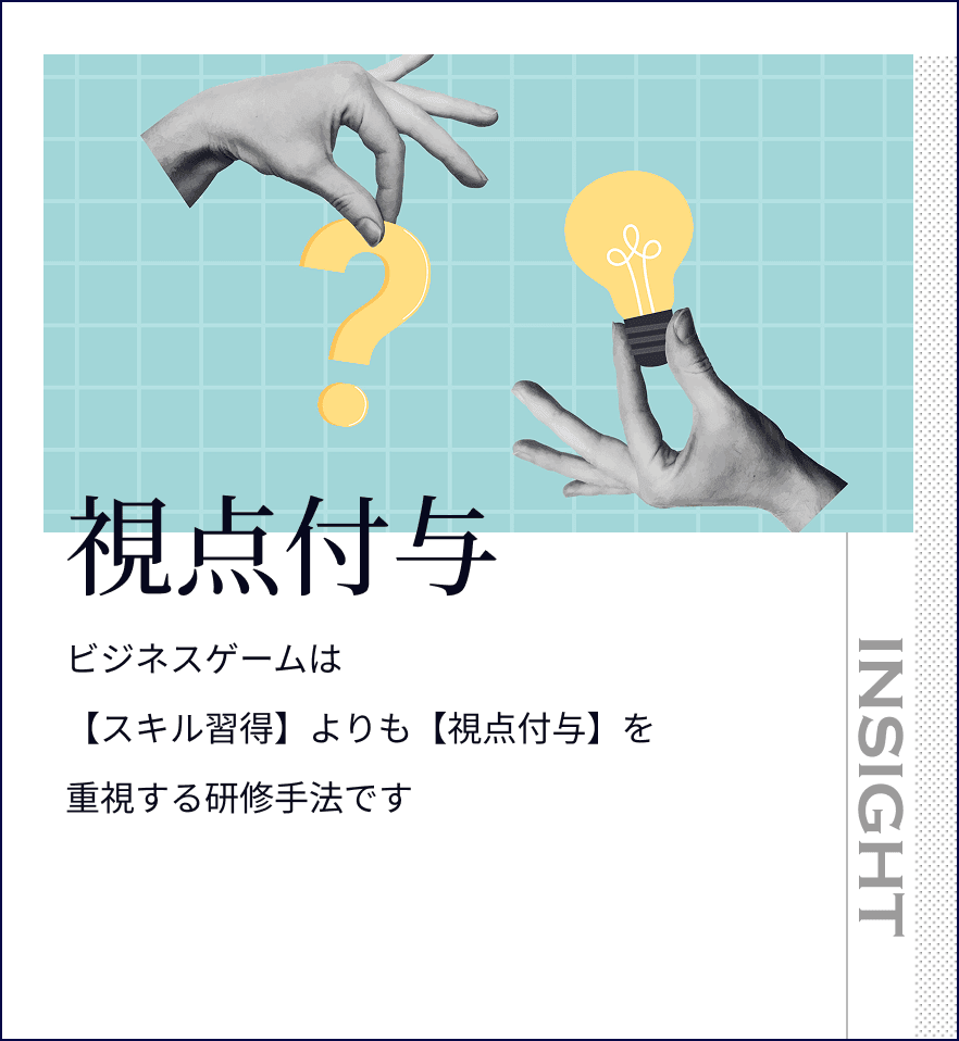 ビジネスゲームはスキル習得よりも視点付与を重視しています。