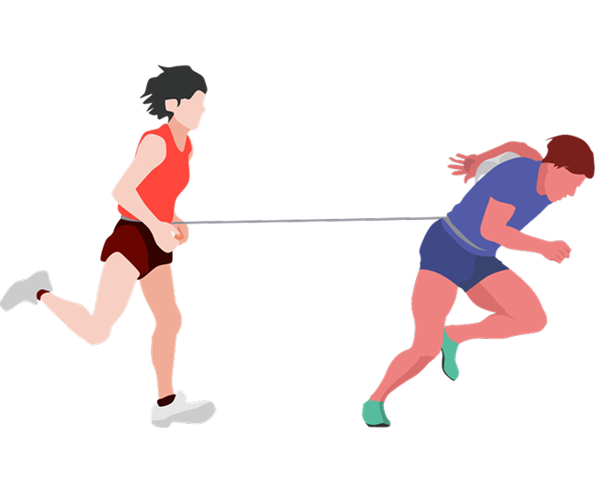 短距離走の選手にゴムチューブを付けて、他の選手が先導して引っ張って、その選手が出せない加速を体験させる「アシステッド走」がそれです。100m10秒を切るためにどれくらい足を高速回転すべきか、腿を高く上げるべきか、腕の振りを早めるべきか、100m10秒を切るというゴールから逆算した正しい体の使い方について「視点付与」を行っていると考えられます。