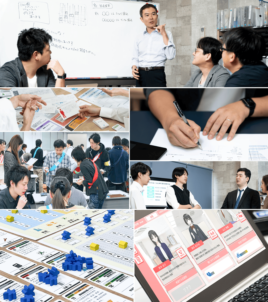 創作株式会社のビジネスゲームプランナーは執念深く、御社の業務/ビジネスを理解します。そして、ビジネスゲームという盛り上がり、学び深い、業務/ビジネスの疑似体験ツールに仕立て上げます。
