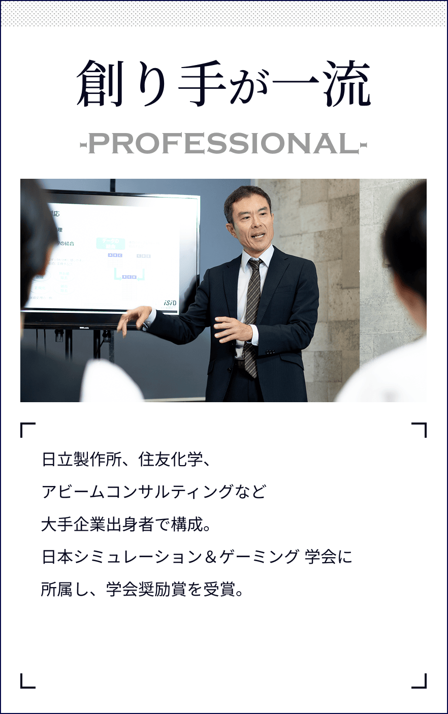これまで19年間、当社に作れないビジネスゲームはありませんでした。人的資本経営、国際税務、病院経営、創薬プロセス、生産加工技術、データサイエンス……最初はみなさん「当社の業務/ビジネスは絶対無理」とおっしゃっていました。